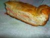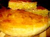 Теперь, осталось собрать все части пирога в одно целое. Для этого сначала смажьте форму для выпечки маслом, и положите в нее самый, на ваш взгляд, объемный пласт теста. На этот пласт ровный слоем уложите рыбную начинку. Рыбную начинку закройте самым тонким пластом теста, на который в свою очередь следует выложить яично- сырную начинку. Последним, третьим пластом закройте весь пирог и защипите его края. Можете слегка наколоть верхушку пирога, чтобы он не вздувался.