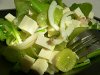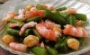 Варим яйца в течении 5 минут. Затем яйца остуживаем в холодной воде, очищаем и нарезаем на четыре части. Тем временем листья салата моем, просушиваем. Рвём их на крупные части в широкое блюдо. Сверху выкладываем дольки яиц.