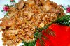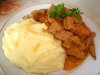 Картошку нарезаем произвольно – дольки, кубики, ломтики – как захотите, солим, перемешиваем. Укладываем в горшочки картошку, сверху тушеное мясо, доливаем чуть-чуть водички, чтобы картофель не был суховат, добавляем соус, оставшийся после жарки мяса. Закрываем крышкой и отправляем в разогретую до 200°С духовку. В духовке мясо нужно держать на слабом огне около часа. Незадолго до готовности можно посыпать мясо тертым сыром.