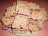 Маргарин должен быть мягкий. Яйцо взбиваем с сахаром, добавляем маргарин и перемешиваем. Потихоньку начинаем всыпать муку (ее нужно просеять и добавить разрыхлитель). Тут точного количества нет, но приблизительно где-то стакан. Добавляйте постепенно и вымешивайте тесто ложкой. Оно должно быть совсем мягкое, эластичное. Я руками не вымешиваю, оно хорошо перемешивается ложкой. Тесто выкладываем в форму и разравниваем. Я делаю так. Форму смазываю маслом. От теста отрываю кусочек и пальцами разравниваю его в форме. Пальцы лучше смочить водой, тогда тесто не будет прилипать. Так один за другим кусочки занимают все донышко и получается слой теста. Поверхность должна быть неровная, с маленькими вмятинками как от кошачьих лапок. Выливаем варенье на тесто и ставим в горячую духовку на 20 - 25 минут. Дольше держать не нужно, иначе печенье пересохнет. Нарезать горячим на ромбики, дать остыть и присыпать сахарной пудрой.