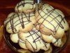 Затем необходимо приготовить начинку: сливки нагреть до кипения, затем залить ими шоколад. Эту массу нужно охладить, а потом взбить. Затем на каждый песочный кружочек аккуратненько выдавить начиночку, из кондитерского кулька. Убрать колечки с начинкой в морозильную камеру.
