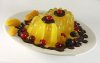 • Салат выложим в неглубокую салатницу и зальём слегка подсоленным желе (оно должно быть жидким). Желе готовится из бульона, в котором варилась говядина (см. инструкцию на пакетике желатина);