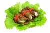 Положите начинку на шницели, заверните рулетики. Положите на рулетики по листику шалфея. Рулетики заверните в шпик, сколите их деревянной зубочисткой.