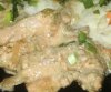 Подавать его лучше всего с рисом и свежей, мелко нарезанной зеленью.