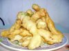 По истечении указанного времени откиньте кусочки курицы на дуршлаг, чтобы они чуть пообсохла, после чего положите их в миску. Вино никуда не выливайте, оно нужно для бульона. Затем, приготовьте панировку из яичных белков и крахмала, и залейте этой смесью кусочки курицы.