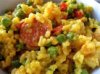Замочите на 15 минут 350 г рисовой лапши в горячей воде. Слейте воду. Обжарьте в сковороде вок 3 измельченных зубчика чеснока и 1/2 ч. л. красного перца в 3 ст. л, растительного масла на умеренном огне в течение 10 секунд.