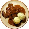 Нарежьте мясо ломтиками и подавайте с подливой, выход 6-8 порций.