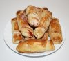 Половину теста выложить на смазанный маслом стол и раскатать прямоугольник. Смазать поверхность сливочным маслом (для любой начинки, кроме повидла), разложить начинку и свернуть рулет. Края аккуратно защипать по всей длине, чтобы начинка не вытекла. Можно свернуть рулет кольцом или рогаликом. Выложить рулет на смазанный маслом противень. Чтобы он не потерял форму – если вы решили свернуть кольцом – поставьте в середину рулета пол-литровую банку с водой, а стенки банки смажьте маслом, чтобы рулет не прилип. Тогда он не расплывется по противню. Дать рулету подойти и поставить в духовку. Время выпекания зависит от вашей духовки, приблизительно – 30 минут. Незадолго до окончания выпечки достать рулет и смазать верх яйцом или молоком с сахаром.