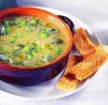 Разлейте суп по тарелкам. Подавайте, добавив в тарелки кусочки рикотты и гренки.