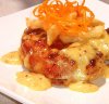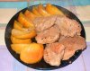 Нарезать мясо ломтиками средней толщины. Смешать муку с черным перцем и солью и обвалять в смеси ломтики мяса. Обжарить в растительном масле. Готовые отбивные переложить на тарелку. Лук нарезать полукольцами и выложить в сковородку, где жарилось мясо. Обжаривать нужно до прозрачного цвета, не больше, иначе появится привкус горчинки. Достать лук из масла. В том же масле обжарить натертую на крупной терке морковь. К моркови добавить обжаренный лук, всыпать остатки мучной смеси, в которой обваливали мясо, все хорошо перемешать. В сковородку выложить кетчуп, горчицу (ее нужно развести в небольшом количестве воды), красный молотый перец, сливочное масло и влить бульон. Прогревать соус в течение нескольких минут. Выложить кусочки мяса, накрыть крышкой и на маленьком огне тушить минут 10 – 15. К такому мясу будет хорош любой гарнир – гречка, макароны, картошка.