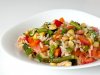 Налейте в большую кастрюлю 2 л воды, доведите до кипения и посолите. В кастрюлю положите фасоль, варите 15 минут, добавьте оливковое масло и нарезанные овощи и варите на слабом огне 30 минут.