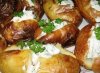 Картофель разрезаем на две половинки. После этого на подготовленный лист выкладываем половиночки картофеля и на каждую половинку картофеля выложить чесночное масло. После этого нужно поставить в духовку для запекания, примерно на десять – пятнадцать минут, температура печи – двести пятьдесят градусов. Приятного аппетита.