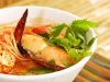 Из багета сделать тосты, приготовить пасту, состав которой может быть разным, ее добавляют в суп или подают отдельно. Суп едят вместе с рыбой.