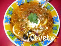 Подаете готовое блюдо к столу с мелко нарезанной зеленью петрушки, крупными маслинами, кружками лимона и жирной сметаной.