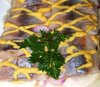Взять блюдо и выложить слой картофеля, затем слой лук, следующий слой сельди. Посыпаем мелко покрошенной зеленью и заправляем заливкой, сделанной из уксуса, горчицы и растительного масла.