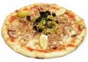 Нагрейте духовку (230°С), возьмите круглую форму (диаметром 28 см) для выпечки пиццы, смажьте оливковым маслом, сверху присыпьте мукой. Тесто вымесите, тонко раскатайте, переложите в форму, сделав маленькие бортики по краям.