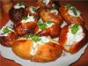 Картофель очистить от кожуры. Смешать в глубокой мисочке растительное масло, сметану, приправы, молотый перец и соль. Получившимся соусом обмазать каждую картофелину. Противень лучше использовать с антипригарным покрытием, но можно запекать и на обычном, только его необходимо смазать растительным маслом. Духовка должна быть разогрета до 230° С. Поставить картошку в духовку и запекать примерно 35 – 40 минут. Время от времени нужно проверять картофель, и чтобы корочка была равномерная, картофель нужно один – два раза перевернуть. К такому блюду идеальным дополнением будет салат из свежих овощей или нарезанные свежие помидоры и брынза.