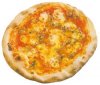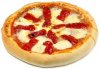 Положите закрытую пиццу на противень, смажьте верх взбитым яйцом, запекайте в духовке 25 минут. Готовую пиццу посыпьте сахарной пудрой и подавайте теплой.