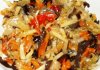Необходимые продукты для приготовления: кальмары, лук репчатый, морковка, растительное масло, лавровый лист – две штучки, перец молотый, соль.
