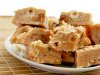 Снимите с огня и вмешайте чашку рубленых грецких орехов или орехов пекан, 1,5 ч. л. ванильной эссенции и соль. Выложите массу в подготовленный противень, распределите равномерно. Охладите в течение 3 часов. Снимите с противня, ухватившись за края пленки. Удалите пленку. Нарежьте квадратиками со стороной 2,5 см.