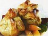 Приготовление. Персики облейте кипятком и очистите, разрежьте их пополам и выньте косточки. Ложкой выньте из середины персиков немного мякоти. Измельчите ее. Разогрейте духовку до 200°С.