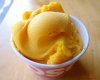Белок взбейте в крепкую пену, добавьте в мороженицу и приготовьте сорбет. Если нет мороженицы, массу вылейте в неглубокую форму и поставьте в морозилку для застывания. Когда сорбет наполовину застынет, выньте его из морозилки, хорошо взбейте, затем снова поставьте в морозилку, чтобы он получился более воздушным (повторяйте процедуру 2-3 раза). Подавайте сорбет с лимонной цедрой.