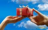Заверните коробочку с подарком в клетчатую (или просто цветную яркую) ткань, используя ее вместо оберточной бумаги. Обвяжите крест - накрест бечевкой или атласной лентой и завяжите концы их красивым бантом. (Кстати, декоративные банты можно приобрести уже готовыми - их достаточно просто приколоть).
