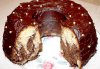 Разогреть духовку до 180° С, форму смазать маслом и обсыпать мукой. Тесто выкладывать слоями, чередуя темное и светлое. Можно провести ложкой или ножом и слегка перемешать слои, чтобы получились разводы. Из этого количества продуктов получается два больших кекса. Выпекать при температуре 180° С 35 – 40 минут.