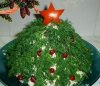 Ёлочку можно соорудить из конфет, из мандарин, собранных в виде дерева. Даже из небольших пирожных можно соорудить ёлочку (на фото).