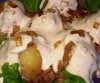 Картофель почистить и порезать долечками, затем залить молоком, добавить приправы, соль и отварить в течение пятнадцати минут. После этого картофель нужно достать из молока.