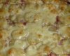 Мясо нужно порезать на кусочки, а затем приправить солью и специями. После этого нужно обжарить на масле сливочном, затем выложить в форму для запекания. Отдельно порезать перец соломкой, а лук репчатый нарезать полуколечками. После этого обжарить лук и перец. Поверх картофеля выложить картофель, покрыть его обжаренным луком и перцем. Сыр нужно натереть на терочке и добавить в молоко, в котором варился картофель. Этой молочно-сырной смесью нужно залить сверху запеканку. Поставить в горячий духовой шкаф на тридцать минут, температура запекания – двести двадцать граммов. Приятного аппетита.