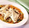 Присутствие сибаса делает это блюдо более диетическим. Вместо сибаса можно взять другую белую рыбу, но куски филе должны быть достаточно длинными.