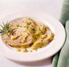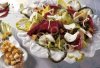 Слейте из сковороды яблочный уксус, смешайте с оливковым маслом, поперчите и посолите.