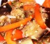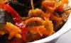Затем необходимо приготовить заливку томатную для рыбы. Для этого перчик сладкий нужно почистить от семян, затем порезать соломочкой и пожарить на растительном масле. Чесночок мелко порезать и добавить к перчику. Петрушку мелко порезать и добавить к сладкому перцу и чесноку, перемешать, огонь убавить и протушить примерно десять минуток. Затем добавить пасту томатную и нарезанные помидорки, все посолить и поперчить, тушить еще примерно пять минут. После этого приготовленную томатную начинку разложить поверх рыбы, присыпать сырком натертым и запечь в печи примерно тридцать минут. Приятного аппетита.