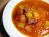 Понадобится - мякоть говядины - 500 гр, картофель - 3-4 штуки, 1 луковица, 150 гр кураги, 1 ст.ложка томатной пасты, 1 ст. ложка топленого масла, перец черный горошком, соль.