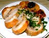 Апельсины очищают, срезая ножом кожуру с белым слоем. Затем очищают дольки от пленок. После того, как мясо будет практически готово, выкладывают апельсины в сковородку с мясом, снова накрывают крышкой и оставляют на маленьком огне еще на 5 минут. Готовое мясо выкладывают на тарелку, поливают соусом и украшают апельсиновыми дольками.