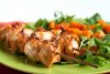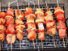 Сковороду смазывают маслом, нагревают и жарят шашлычки на сильном огне примерно в течение полуминуты с каждой стороны. Затем убавить огонь до среднего и прожарить еще немного со всех сторон. Подавать куриные шашлычки следует с жареным картофелем и салатом из свежих овощей.