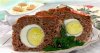 Из полученного фарша скатайте 4 одинаковых шариков, а потом в середину каждого из них вдавите по половине вареного яйца. Затем, соедините края фарша так, чтобы яйца совсем не было видно.
