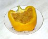 1. Выбрать сладкий болгарский перец одинакового размера, вымыть и подготовить к фаршировке: сделать надрез на верхней части стручка таким образом, чтобы получилась своеобразная крышечка, удалить стержень с семенами. Подготовку перца надо делать осторожно, чтобы не повредить стручки. Затем опустить перец на 2 минуты в кипящую воду, затем откинуть на сито, процедить и подождать немного, пока остынет.