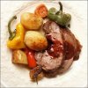 Когда мясо будет готово подавать его надо, разрезав на небольшие ломти и полив соусом.