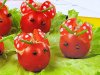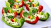 В сырный фарш можно добавить кусочки перца, которые срезались вместе с плодоножкой. Их меленько порубить и смешать с сыром, потом добавить майонез. Или сделать несколько видов сырного фарша – в один добавить зелень укропа и нафаршировать красный перец, в другой - кусочки перца или сделать фарш из разных сортов сыра. Смотрится такая закуска очень эффектно, но нужно очень плотно наполнять перцы и хорошо охладить.