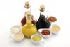 Затем в полученную массу необходимо осторожно вливать оливковое либо растительное масло. Вливаем по чайной ложечке и непрерывно размешиваем соус. Так постепенно вводим в наш соус всё масло. Если соус начал сворачиваться, не беда. Долго мешайте и все ингредиенты размешаются снова.
