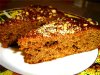 Ингредиенты: 200 грамм жмыха, 2 яйца, стакан муки, чайная ложка разрыхлителя, 150 грамм сахара (если жмых не очень сладкий, то можно побольше), 150 грамм растительного масла, орехи, цедра лимона, чайная ложка имбиря, можно добавить изюм и кокосовую стружку.