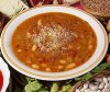 Приготовление. Фасоль замочите на ночь, затем воду слейте, залейте новой, доведите до кипения, снимите пену, положите тимьян, 2 зубчика чеснока, готовьте под крышкой 1 час на среднем огне. Воду слейте, залейте фасоль бульоном. Обжарьте на среднем огне с маслом мелко нарезанный лук почти до мягкости, добавьте мелко нарезанный перец и перчик, обжарьте за 3 мин., всыпьте паприку и мелко нарезанный чеснок, через почти минуту положите помидоры, доведите до кипения, добавьте через 3 мин. к фасоли, готовьте ещё полчаса при слабом кипении. Положите нарезанную колбасу, грудинку, ветчину и лавровый лист. Стакан фабады положите в блендер, перемешайте в пюре, влейте обратно, доведите до кипения, готовьте на среднем огне 30 минут. Выбросите лавровый лист, положите перец, соль, половину мелко рубленной петрушки, накройте крышкой, дайте постоять 10 мин. и подавайте, посыпав петрушкой.