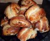 Готовим булочки. Разводим в воде дрожжи. Добавляем сахар и немного муки. Даём опаре постоять. Затем вводим всю оставшуюся муку, растительное масло и соль. Замешиваем тесто. Даём готовому тесту "подойти". Затем делим всё тесто на небольшие порционные кусочки. Из каждого кусочка лепим плюшки (любой формы).
