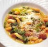 Добавьте в суп тертый пармезан, хорошо перемешайте. Суп подавайте горячим.