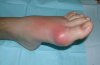 припухлости, покраснению, болезненности (острый приступ подагры), ощущаемым, главным образом, в плюснофаланговом суставе большого пальца ноги и в коленных суставах.