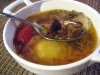 Морской коктейль вынимаем из морозилки и не размораживая его закладываем в суп. Варится коктейль буквально пару минут, поэтому уже через пять минут суп можно будет выключать. Добавляем в конце в суп паприку и пропущенный через пресс чеснок.