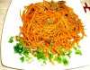 Морковку сильно отжимать не рекомендуется, сок пропитает мясной слой вместе с майонезом, да и другим слоям тоже достанется, и вкус готового салата от такого «содружества» только выигрывает.