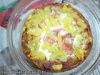 Готовим заливку. Сыр натереть на мелкой терке, взбить яйца, добавить к ним сметану, муку, сыр, соль и перец. Залить смесью запеканку и поставить в духовку на средний огонь на 45 – 50 минут.